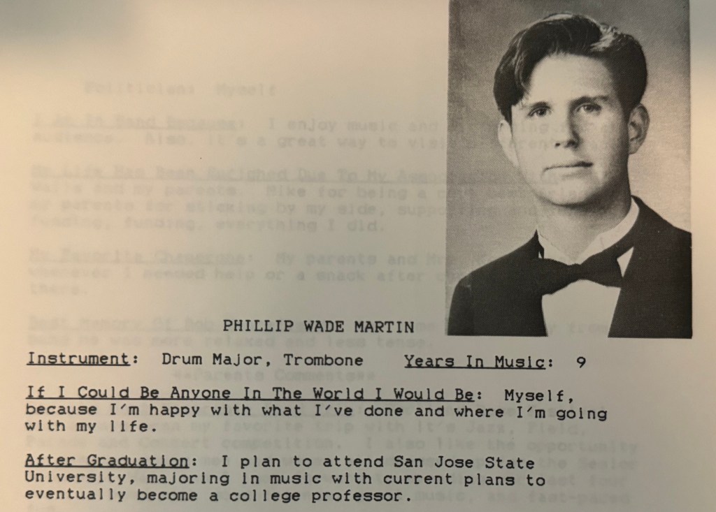 Reflecting on the journey from high school to now, I’m struck by the unpredictability of life and the profound impact of seemingly small choices. While cleaning out some totes in the garage, I found a mini yearbook my mom had put together for each of us—a snapshot of who we were and who we thought we might become. Among the lighthearted predictions, Jenny Luna believed Dan Johnson would be the most famous—albeit with a twist of dark humor, imagining him featured on America’s Most Wanted. As for me, I had aspirations of attending San Jose State University to major in music, dreaming of one day becoming a college professor.